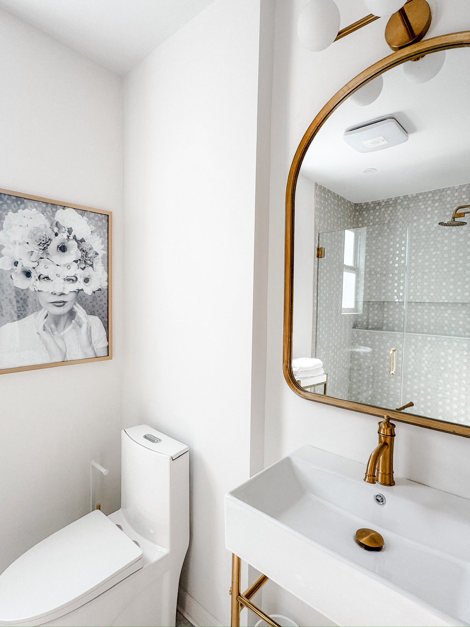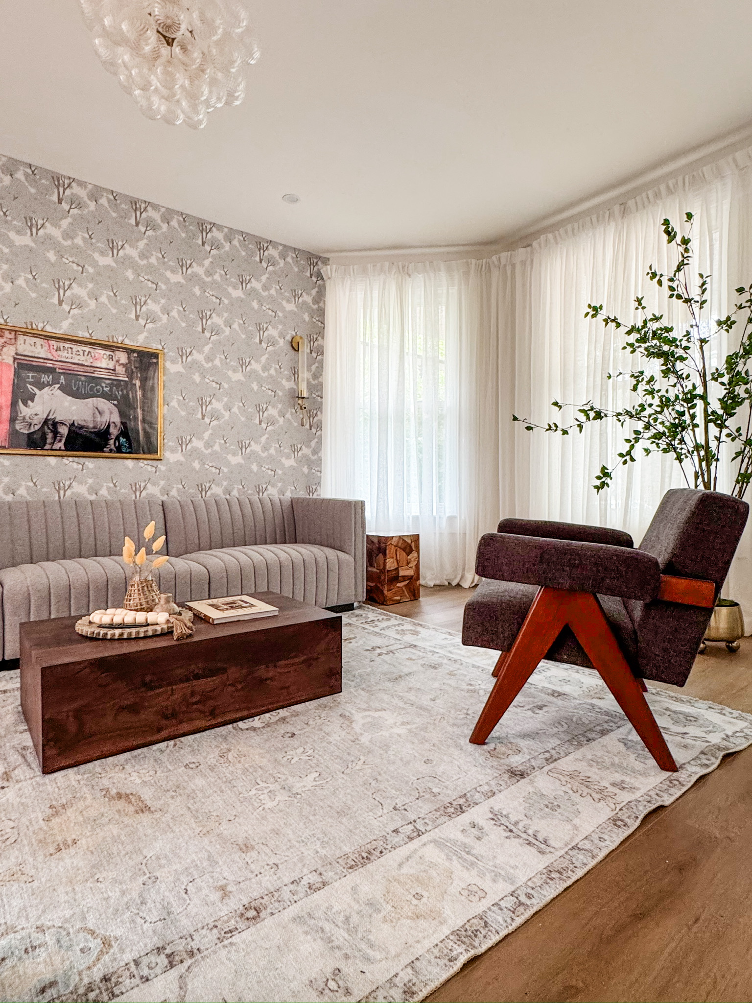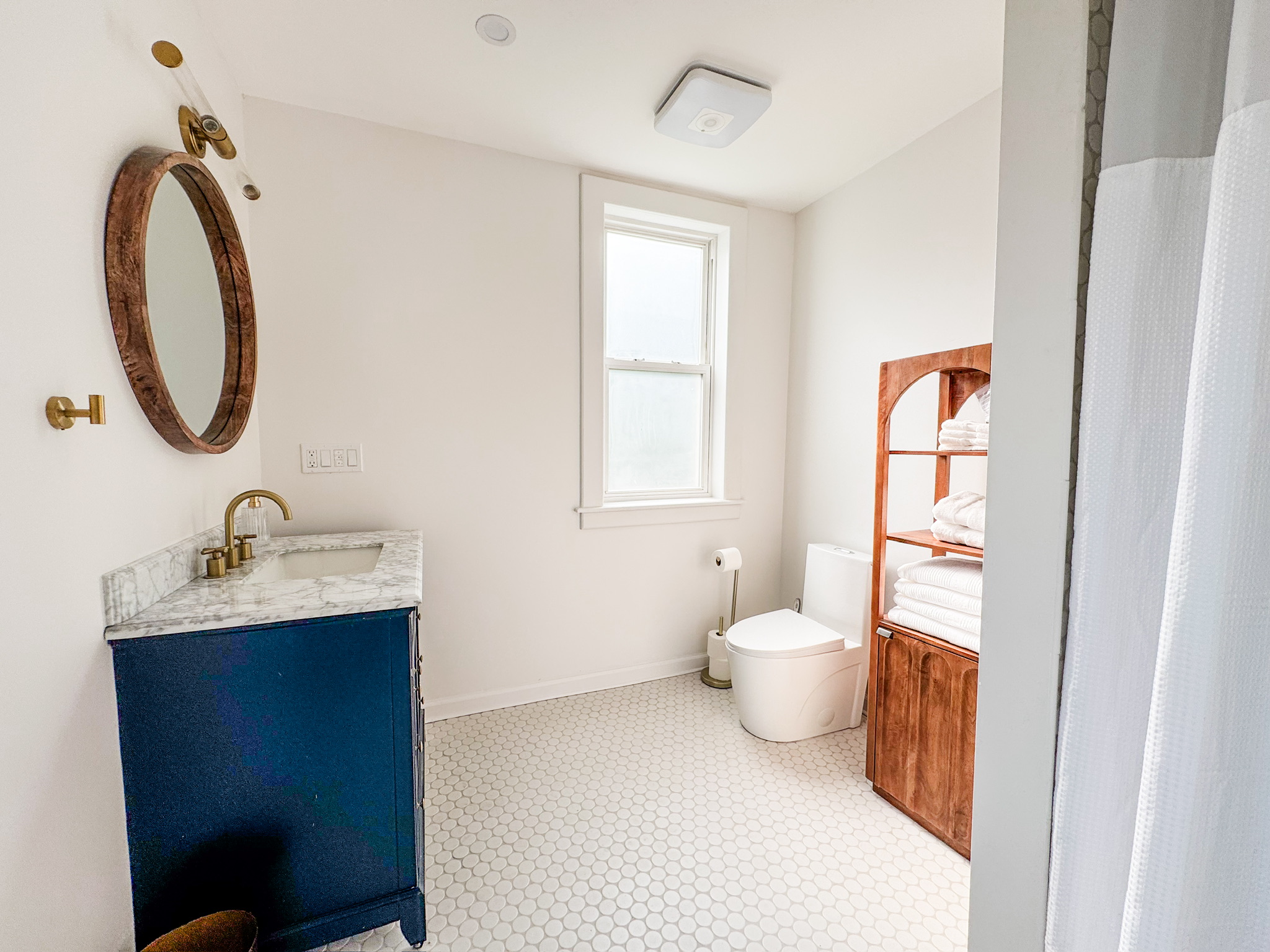 This once-abandoned unit is now a clean, modern retreat. By keeping the footprint intact and layering in bold wall coverings, statement tile, and thoughtful details, we created a space that feels both sophisticated and inviting — the perfect home base for traveling professionals.