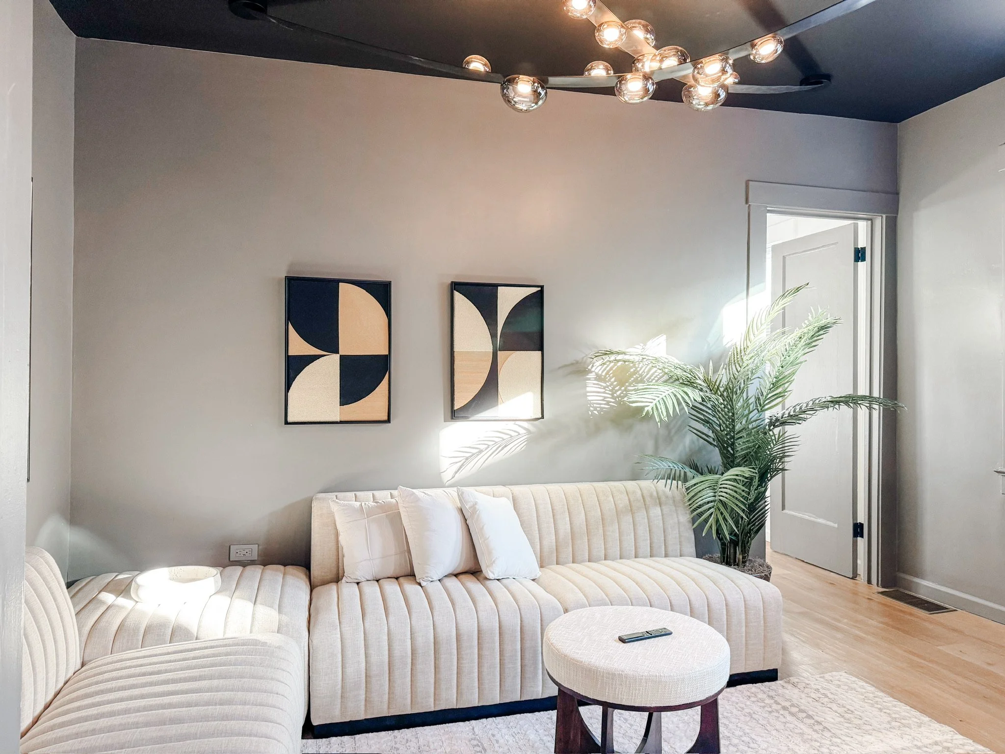 What was once small and uninspired is now a chic, high-contrast hideaway. The living room feels dark and cocooning, the bedroom light and airy — together creating balance, drama, and comfort. With smart layout changes and layered details, the unit became a stylish space guests don’t want to leave.